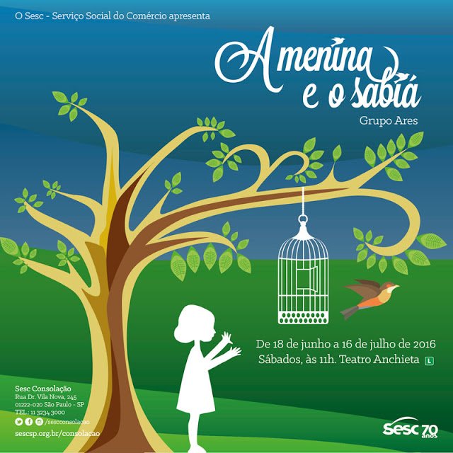 O Sesc Consolação recebe a estreia na capital do espetáculo “A Menina e o Sabiá”, que mescla dança e acrobacias aéreas. Uma história poética sobre liberdade dedicada às crianças que encanta o público de todas as idades. A direção é de Monica Alla (grupo Ares) e Miló Martins. A temporada no Teatro Anchieta terá cinco apresentações, aos sábados, de 18 de junho ao dia 16 de julho.