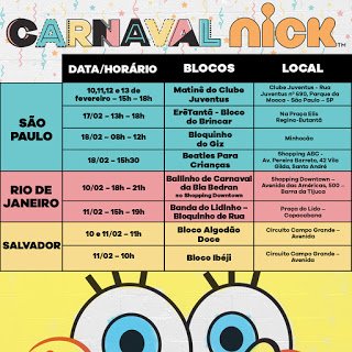 Confira quais blocos receberão a ação do canal Nickelodeon: