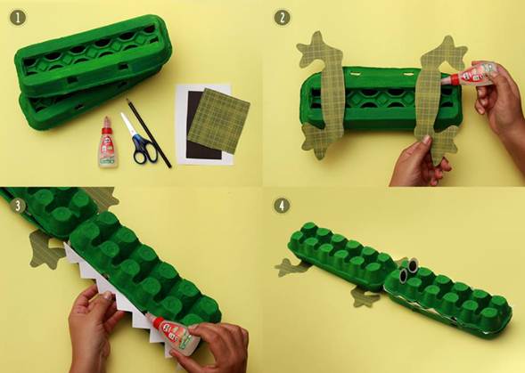 Passo 4: Recorte os olhos e cole-os no jacaré. Espere secar e comece a brincar.