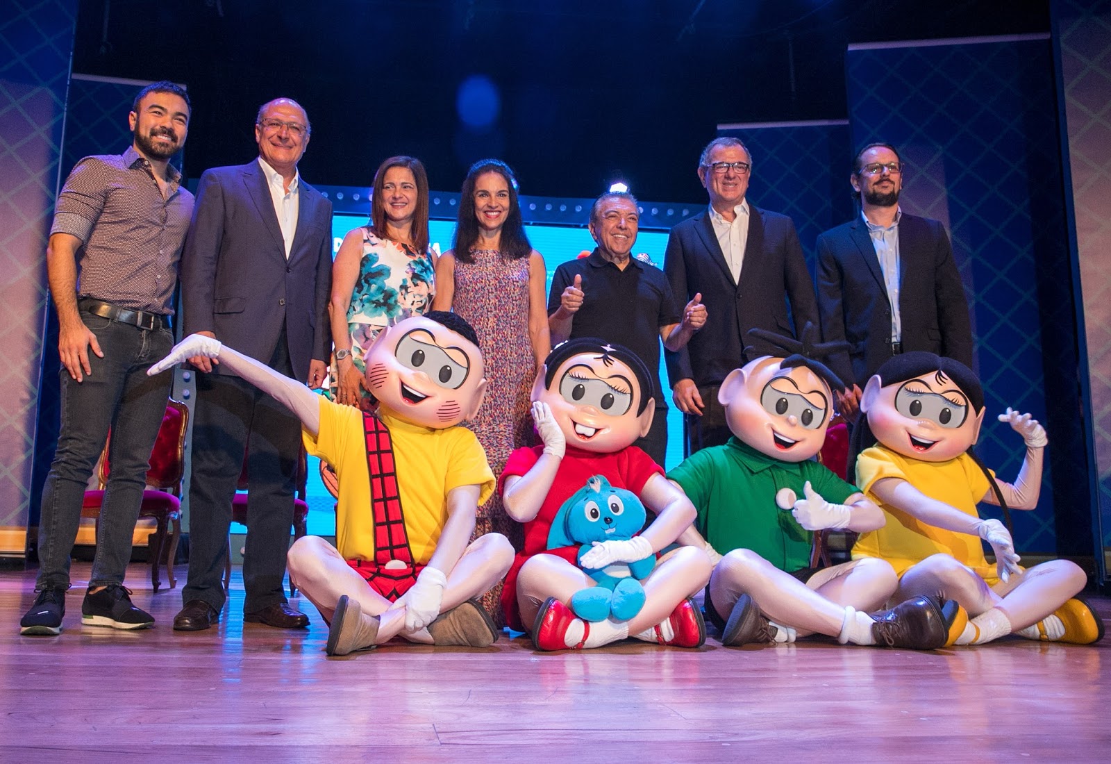 Marcelo Beraldo, diretor executivo do Parque da Mônica, Marcelo Kheirallah, CEO do Grupo São Joaquim, Mauricio de Sousa, cartunista e fundador da Mauricio de Sousa Produções, Lúcia França, mulher do vice governador de São Paulo, Lu Alckmin, Presidente do Fundo Social de Solidariedade e primeira dama de São Paulo e Geraldo Alckmin, Governador de São Paulo.