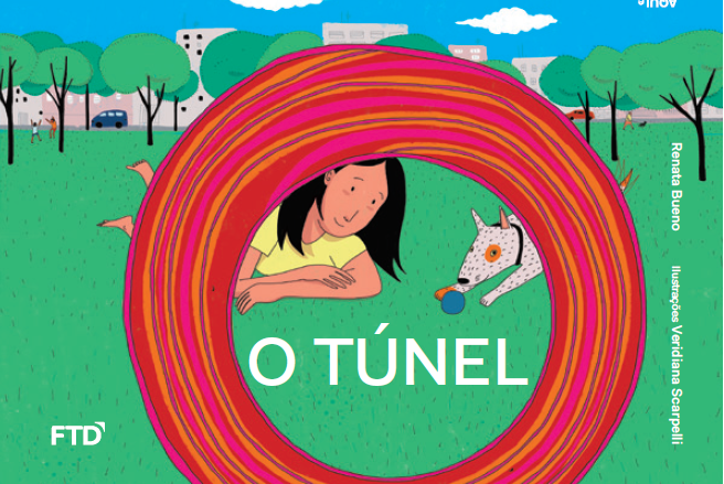 Valendo-se da multiplicidade de ideias que nos vêm à mente quando pensamos na palavra “túnel”, a autora e a ilustradora da obra, Renata Bueno e Veridiana Scarpelli, apresentam ao leitor uma história divertida que trata da noção de perspectiva e ponto de vista. No livro encontramos uma menina e um menino brincando em um parque. Eles tiram o sapato, montam um objeto sanfonado na grama e iniciam uma brincadeira recreativa. Por meio da ação, as crianças exploram conhecimentos espaciais e possibilidades visuais. O projeto gráfico e as ilustrações permitem a interação com a história num jogo lúdico que testa o olhar dos leitores.