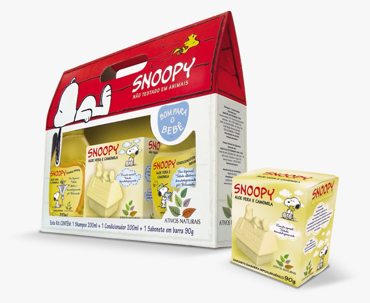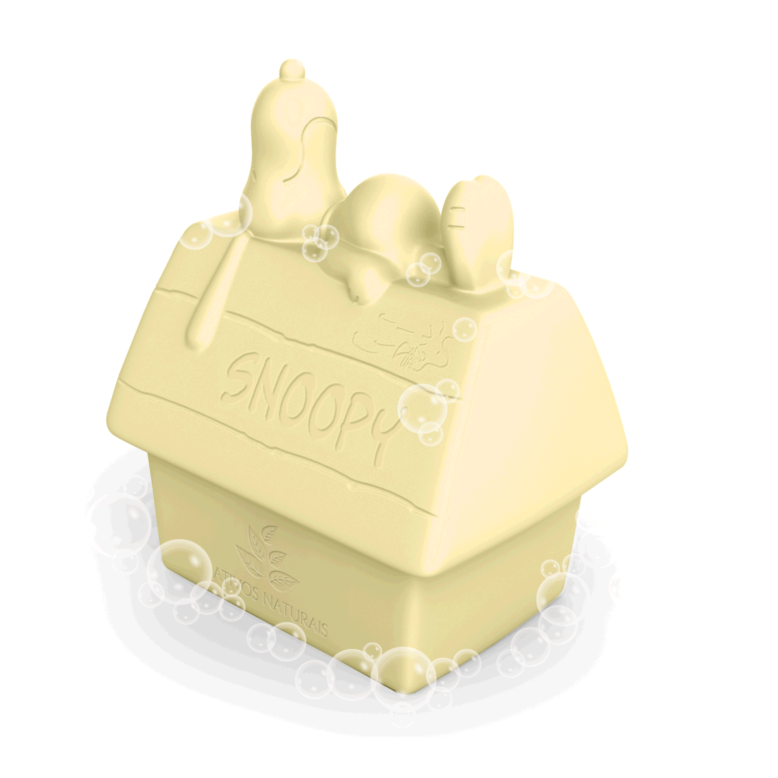 embalagem no formato da casinha do Snoopy, contendo Shampoo, Condicionador e Sabonete em barra. Mas não é qualquer um, não! O sabonete tem a clássica imagem do personagem deitado sobre a casinha. É o presente mais gracioso das crianças ou não é?