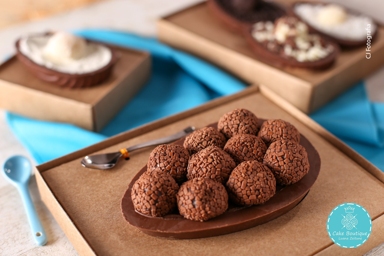 Outra opção é a marca Brigadeiro do Zé (@brigadeirodozé), que vende ovos de colher de sabores como chocolate belga, Oreo ou Kit Kat ou versões com decoração temática, além de kits – o de degustação vem com três ovinhos e o confeiteiro permite que as crianças coloquem a mão na massa.
