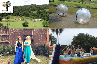 Interação com todos os animais / Playground / Cama elástica / Passeio a Cavalo / Passeio de Charrete / Passeio de Pônei / Passeio no Boi de Sela / Tirolesa Trovão (350 m) / Water Ball – acima de 3 anos / Futebol de sabão / Tobogã / Pesca Esportiva / Tobogã Gigante / Futebol de sabão /