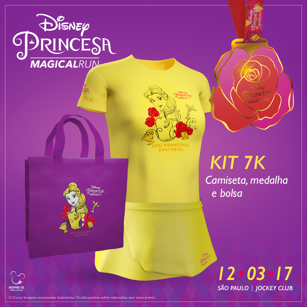 O destaque desta edição será a Princesa Bela que será a personagem estampada nas camisetas dos kits da corrida.