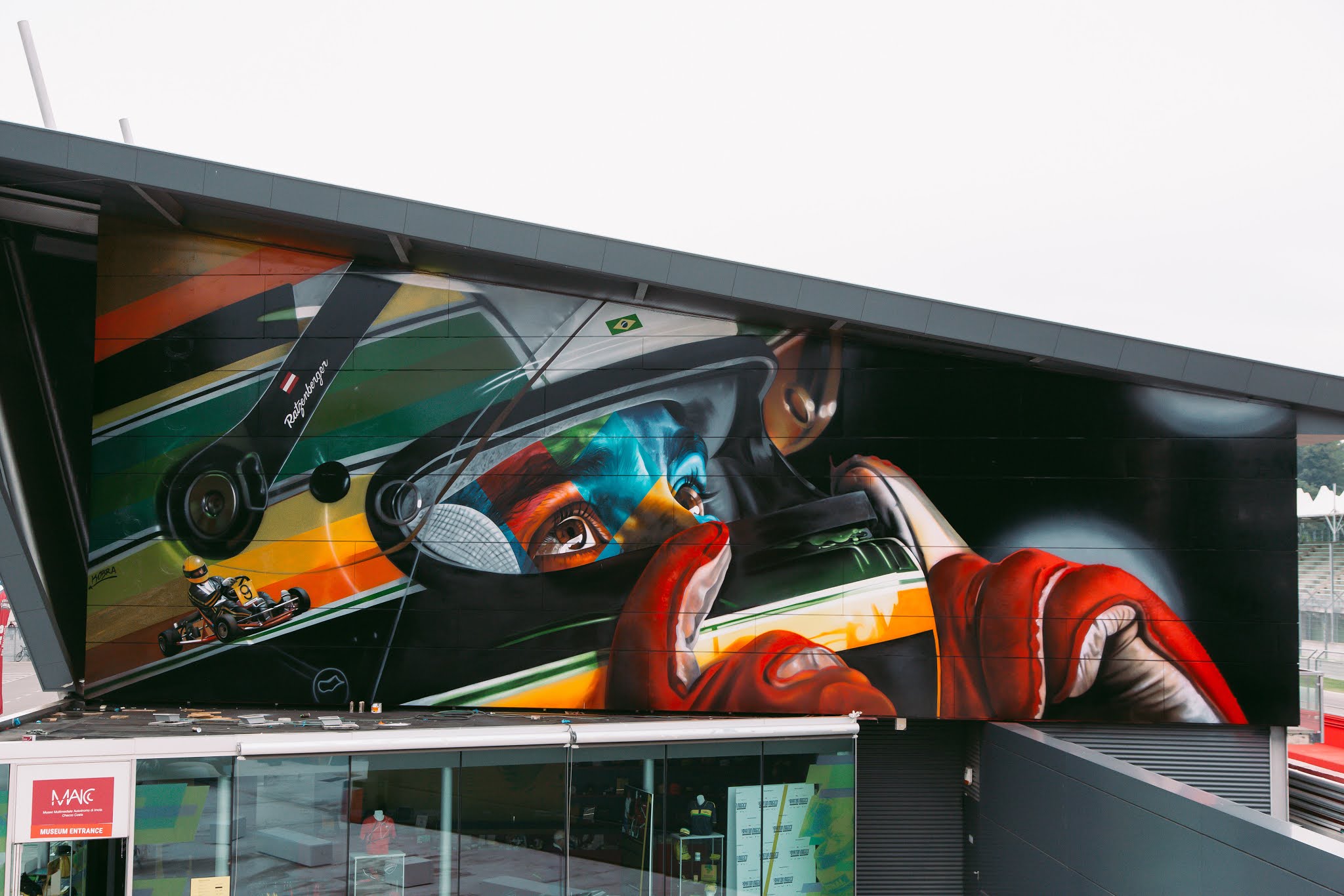 O mural “A Lenda do Brasil”, que mostra o piloto de capacete e olhar expressivo, é uma das principais obras de Kobra, que tem Senna como uma de suas grandes referências. “Embora eu não seja ligado aos esportes, Senna sempre foi um dos meus maiores ídolos e uma inspiração para mim, com seu exemplo de determinação e superação. Além disso, transformou o ato de dirigir carros de corrida em, além de um esporte, uma verdadeira arte, que encantava e inspirava a todos”, afirma Kobra, que já pintou 12 murais, além de uma tela, sobre o tricampeão mundial de F-1 (nascido em 21 de março de 1960, em São Paulo). Em setembro de 2019, Kobra realizou um mural. no autódromo de Ímola, Itália, onde o piloto morreu ao bater sua Williams nos muros da curva Tamburello, no GP de San Marino no dia 1º. de maio de 1994. Em março de 2020, inaugurou o mural “Superação” no autódromo de Interlagos, em São Paulo.