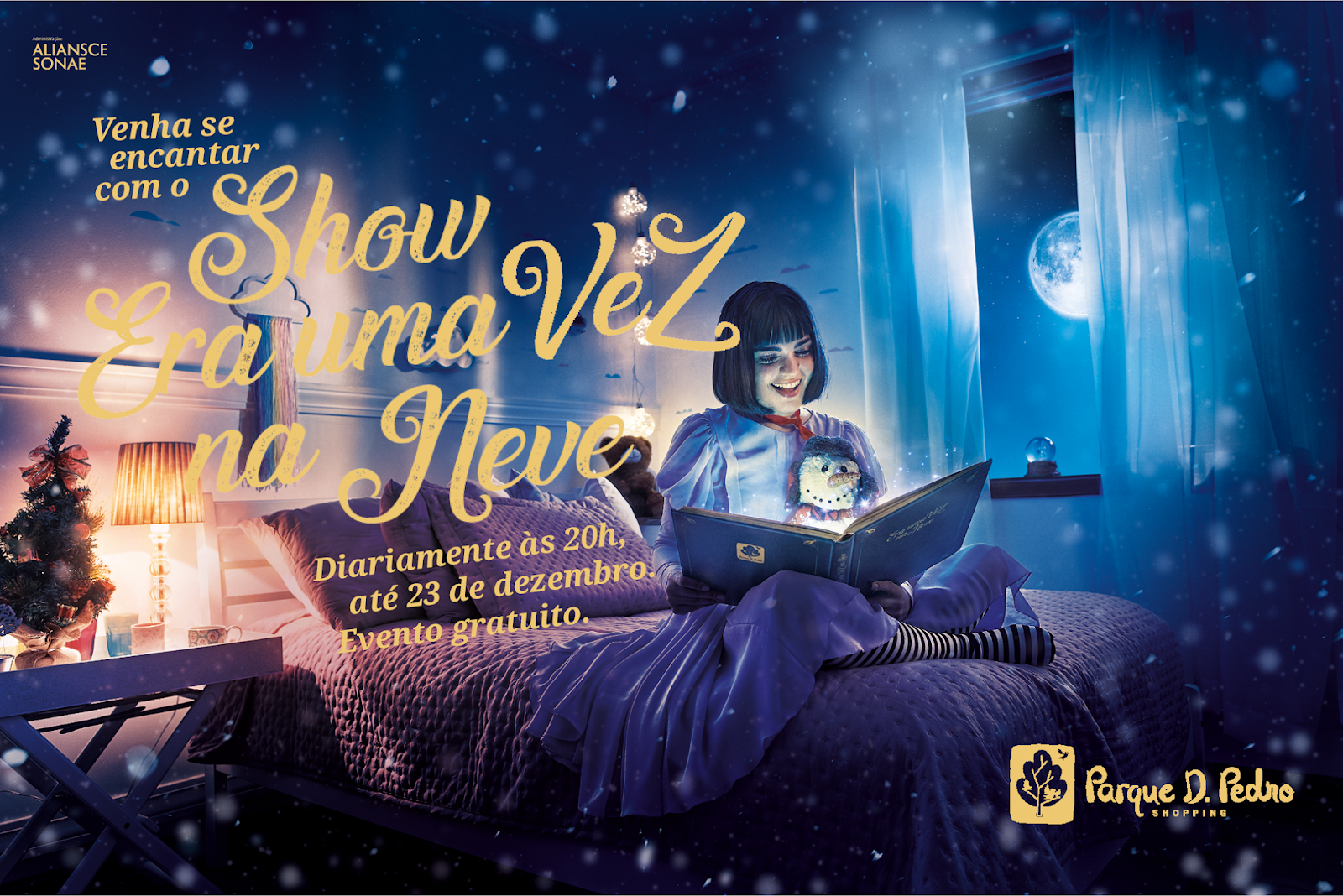 A partir da próxima terça-feira, dia 3 de dezembro, o Parque D. Pedro Shopping dá início ao espetáculo natalino ‘Era uma vez na neve’, evento gratuito que acontece até o dia 23 de dezembro, às 20h, na Praça de Alimentação do centro de compras.