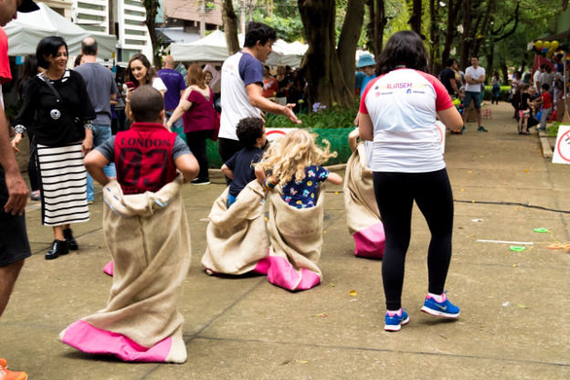 Corrida de saco, bolinha de gude, amarelinha, cabo de guerra, bambolê, chinelão estão na programação. Diversão garantida para pais, filhos, tios e avós.