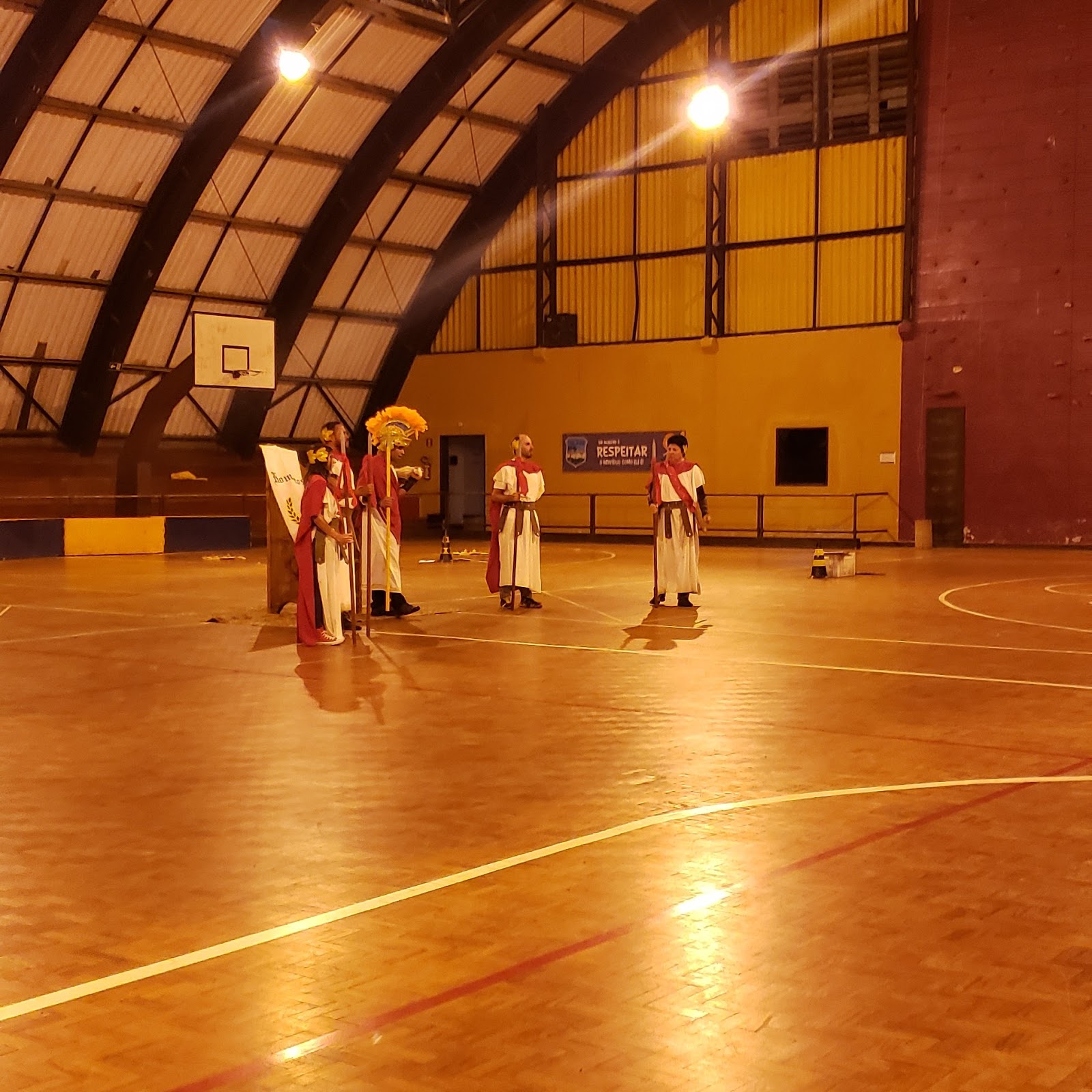 Ajuda-ajuda: Essa atividade pode ser iniciada sozinha. No entanto, ao longo do percurso o participante ficará sem opção e precisará da ajuda dos colegas. Para subir, os paioleiros utilizarão os bastões, que são móveis, como degraus.