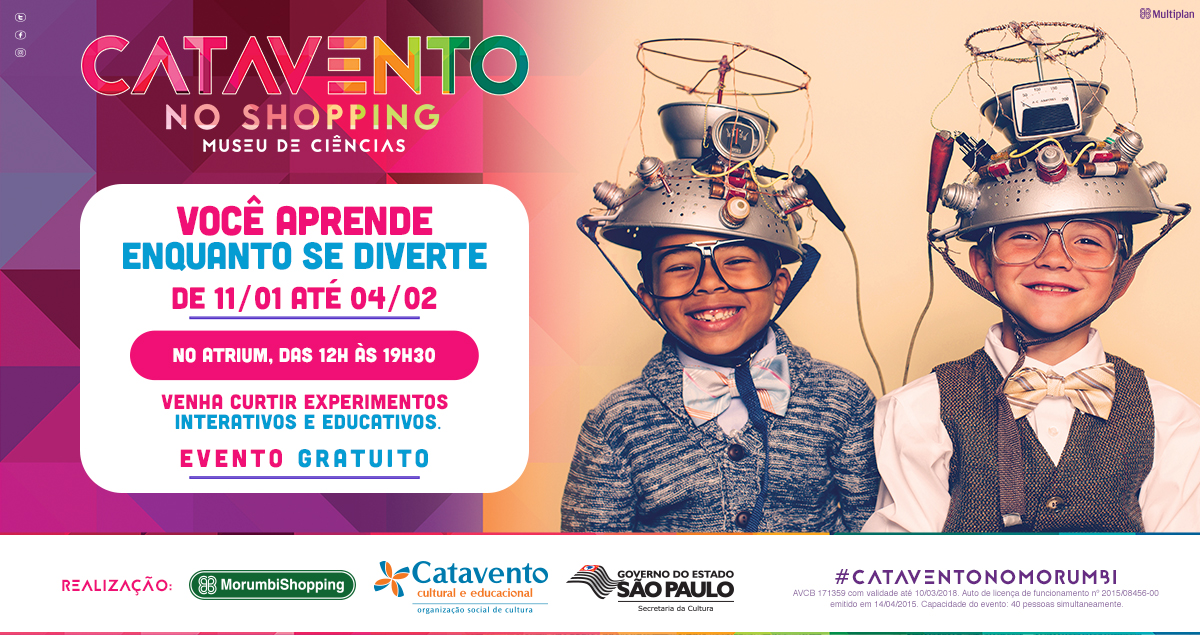O Museu Catavento, instituição de Ciência e Tecnologia da Secretaria da Cultura do Estado de São Paulo, levará mostra de experiências científicas ao Atrium do MorumbiShopping durante as férias de janeiro. O evento Catavento no Shopping vai de 11 de janeiro a 04 de fevereiro. Famílias inteiras poderão se divertir e vivenciar algumas das diversas atrações do Museu.