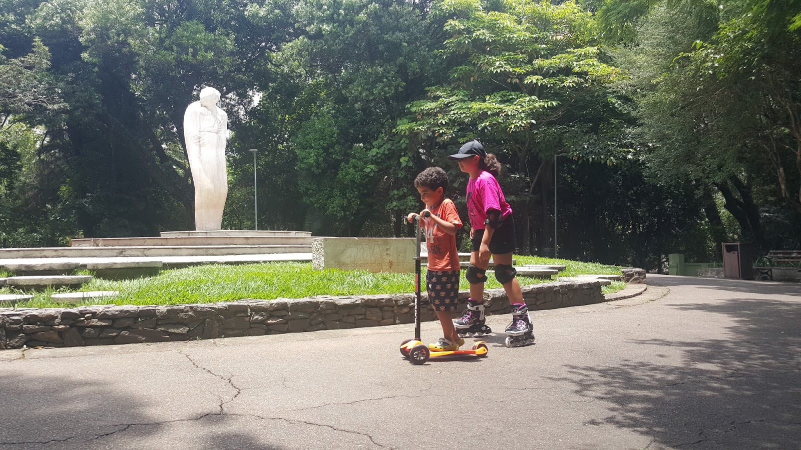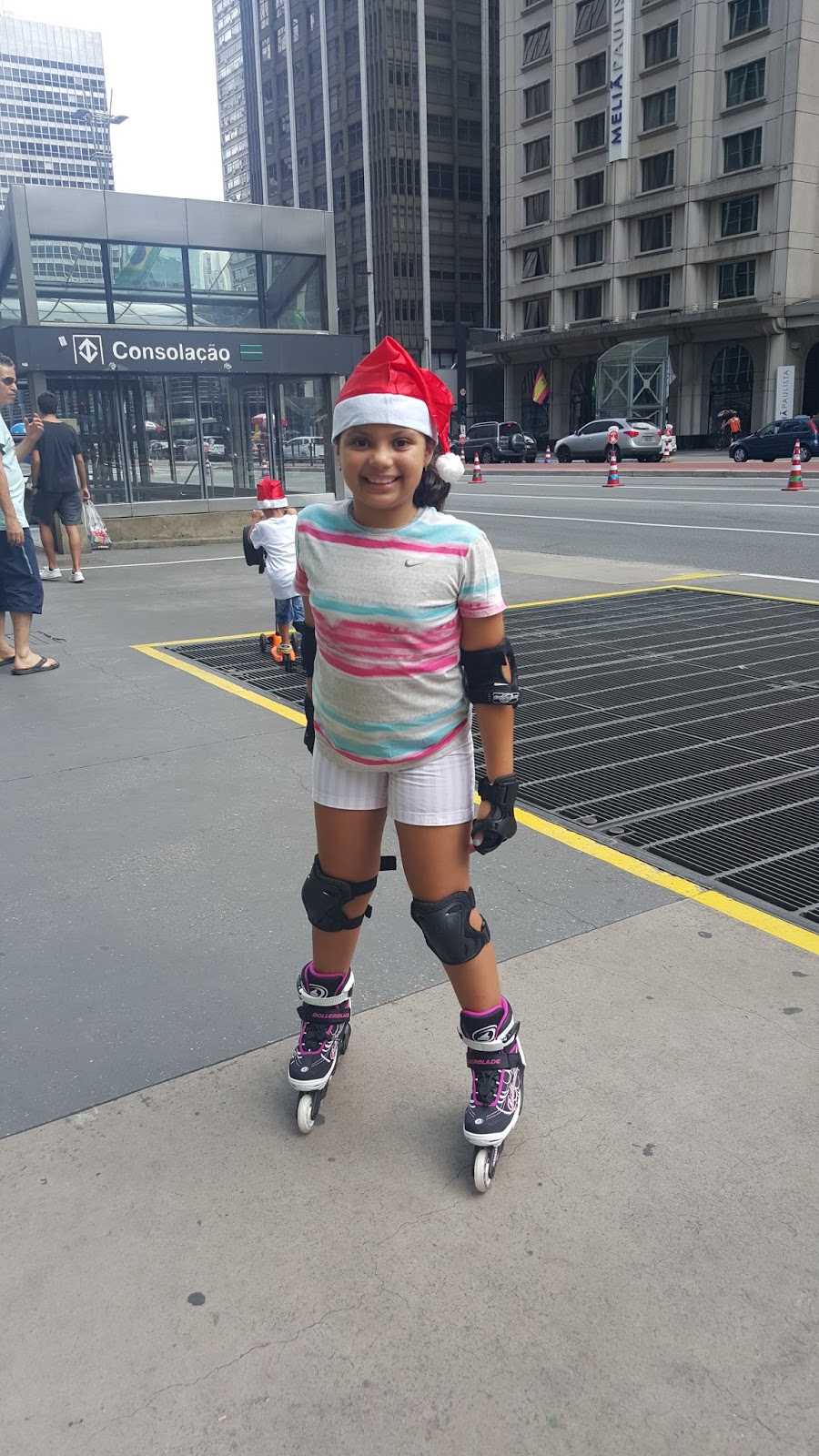Fomos até a Avenida Paulista na sexta (feriado de natal) tomar café na padaria Bella Paulista e depois as crianças foram andar de patinete e patins que é o novo vício da Manu.