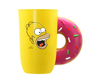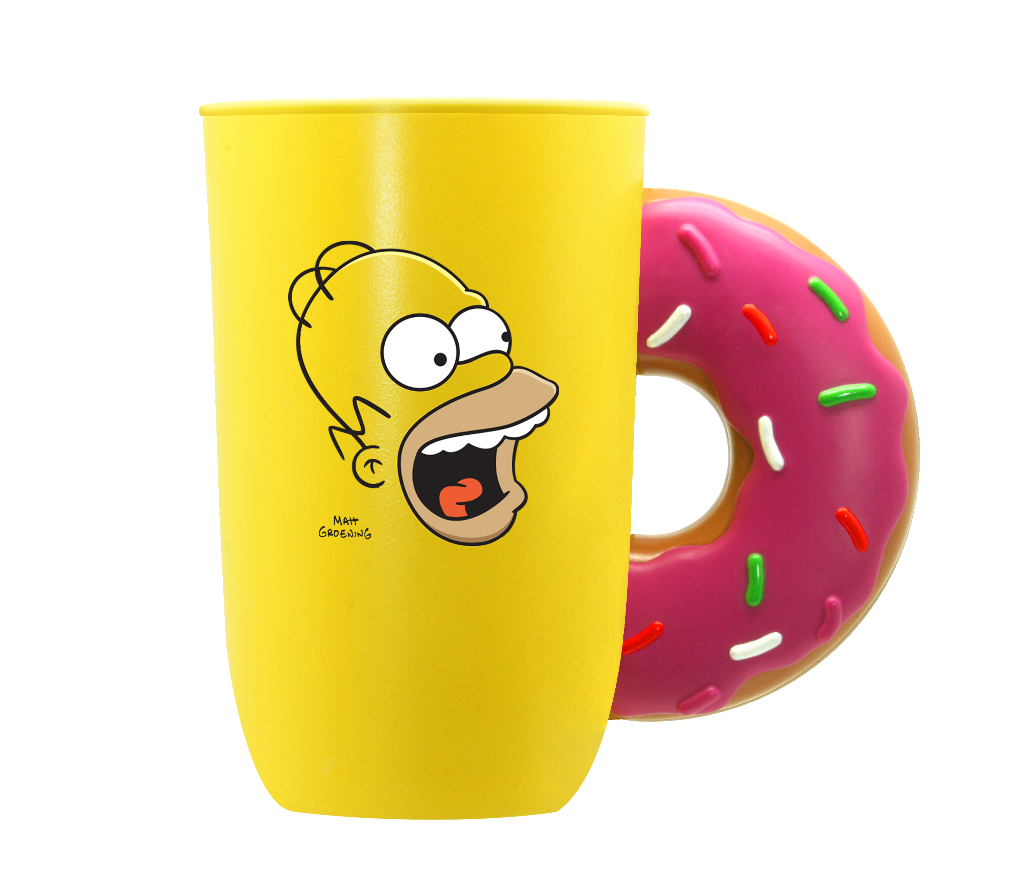 caneca com alça em forma de Donuts, doce preferido do Homer Simpson. A