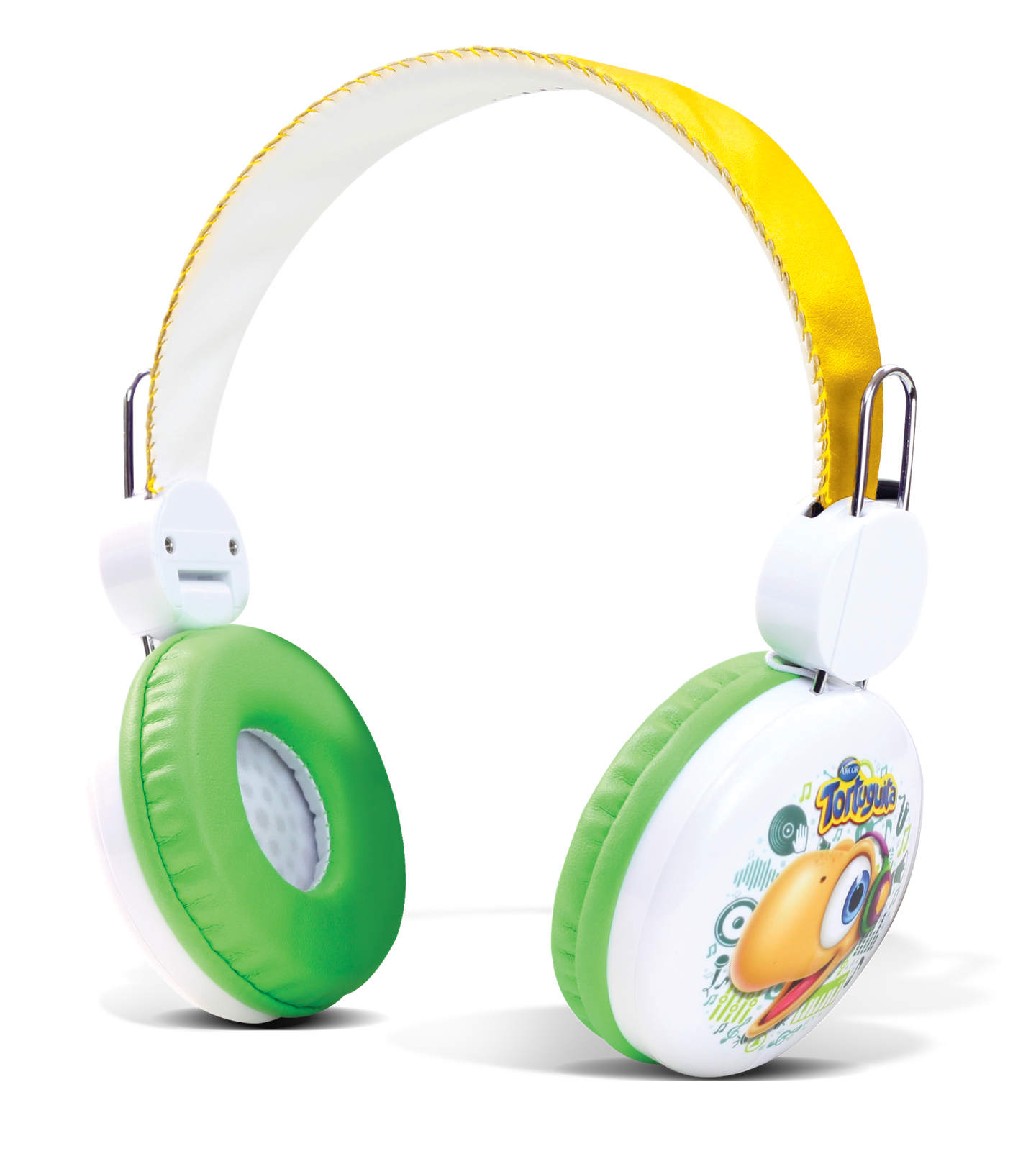 de headphone disponíveis: roxo e amarelo, ambas com a carinha da