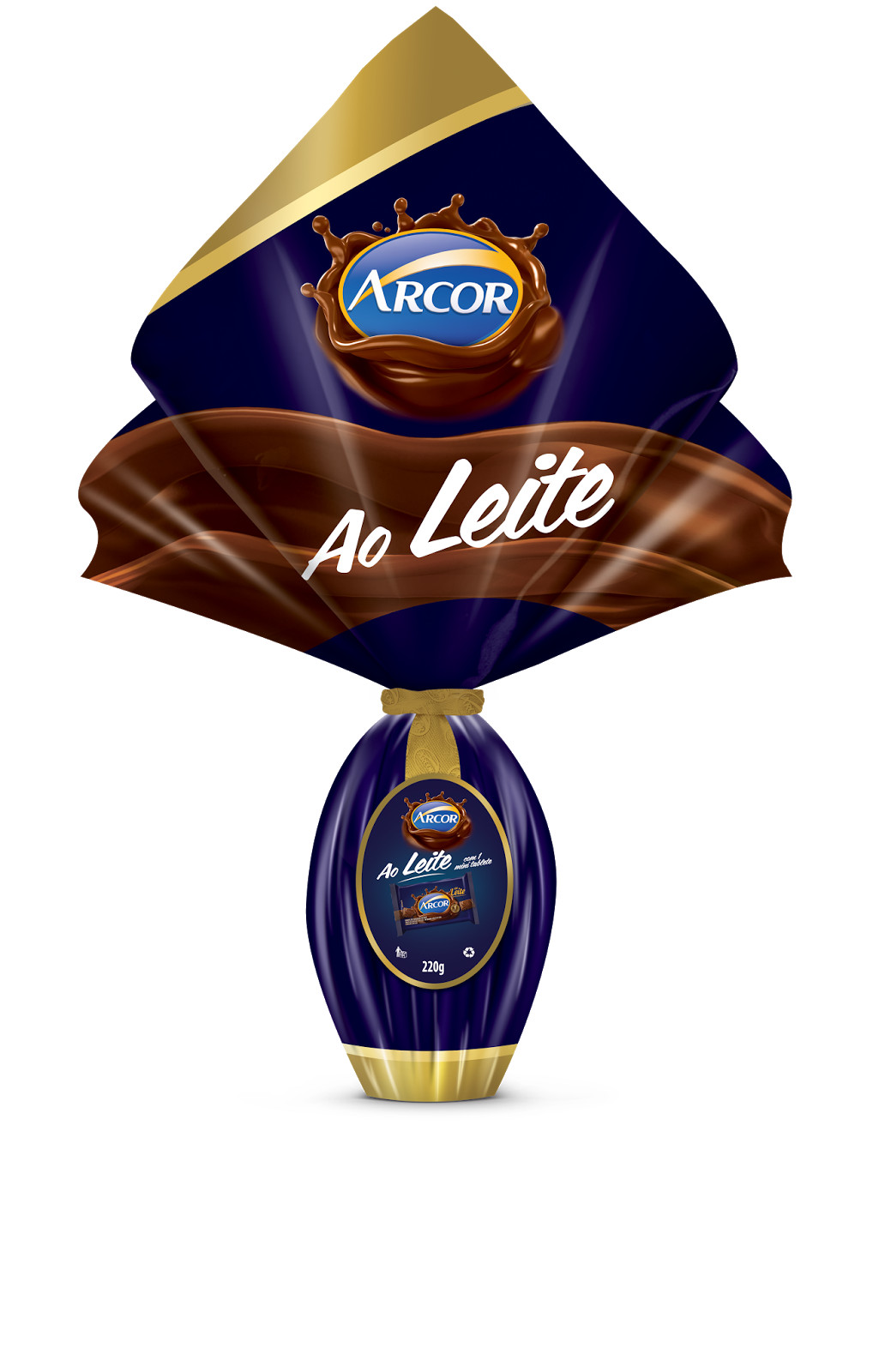 Arcor ao leite 220g: clássico ovo de chocolate ao leite com um tablete do