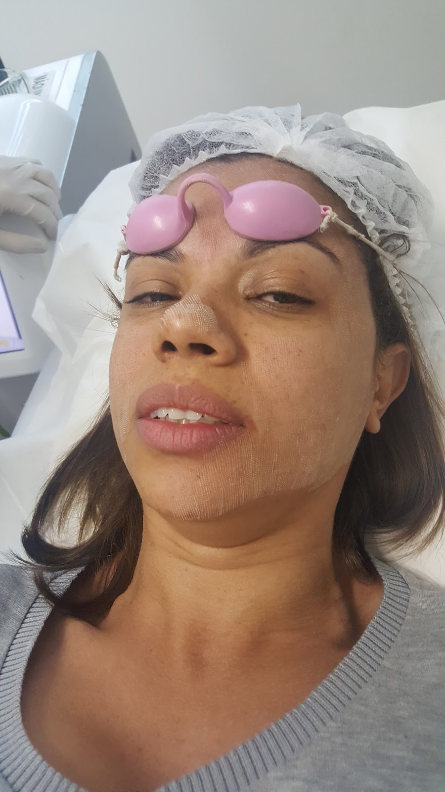A médica fez também aplicação de peeling que potencializa os efeitos do tratamento. Que deve ser retirado após quatro horas.