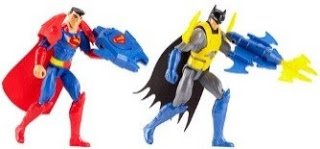 Batman e Superman possuem 11 pontos de articulação, capas macias e acessórios que se encaixam e que podem ser usados como armaduras e equipamentos. Os acessórios podem ser trocados entre as figuras do sortimento, criando transformações inovadoras!