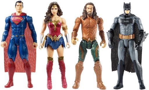 Action Figures de 30cm do filme Liga da Justiça, com estilos e trajes atualizados, além de 11 pontos de articulação. Preço Sugerido: R$ 59,99