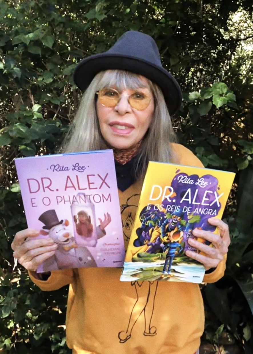 Rita Lee lançou nessa semana mais dois volumes da série Dr. Alex e gravou um vídeo fofo endereçado às crianças: “Alô, criançada! Surpresa! Mais dois livrinhos do Dr. Alex: Dr. Alex e os Reis de Angra e Dr. Alex e o Phantom. São as aventuras do ratinho Alex, um pacifista que defende a natureza, animais, todos os seres vivos”, diz Rita.