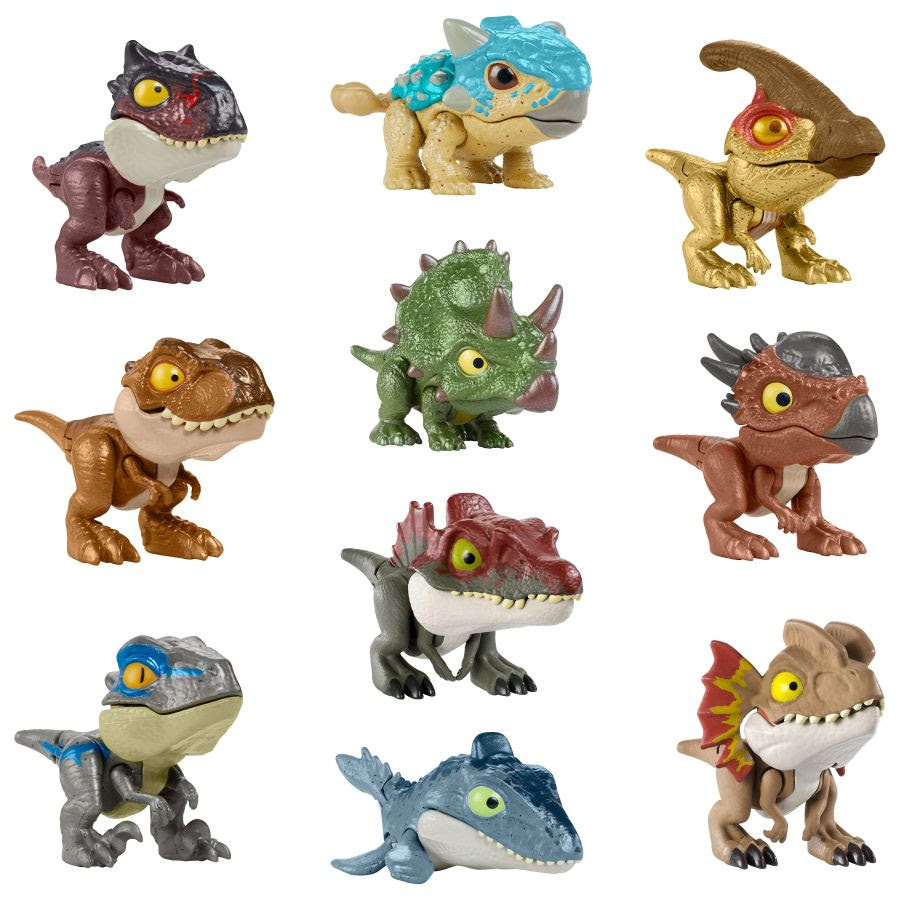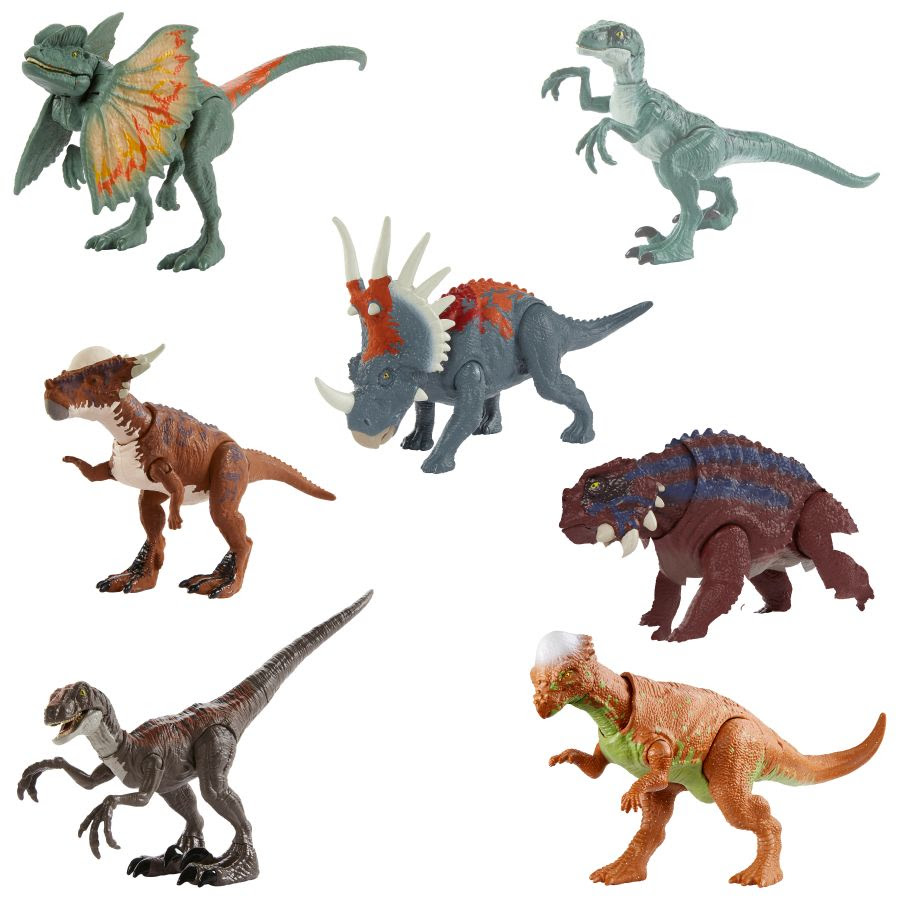 Figuras que representam o movimentos de ataque, mordidas na cabeça, nadadeiras e muito mais. Basta pressionar uma área designada na figura de ação do dinossauro para fazê-la se mover. As figuras também incluem braços e pernas articulados, escultura realista e decoração autêntica igual da série. Ao todo são 12 espécies diferentes.