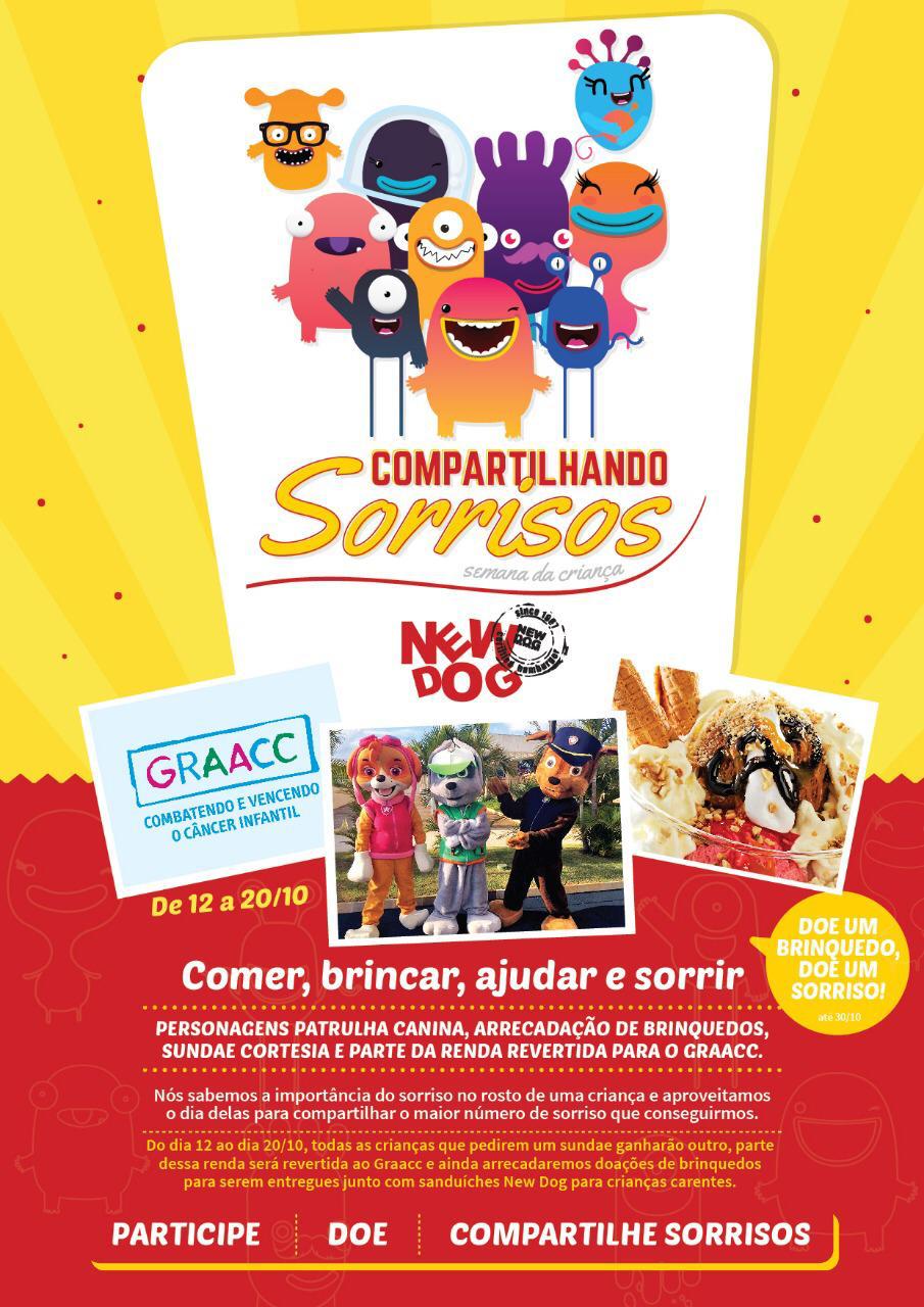 O New Dog preparou ações super especiais esse mês de outubro com personagens da Patrulha Canina, arrecadação de brinquedos, sundae cortesia e parceria com o GRAACC fazem parte das ações que o New Dog preparou em comemoração ao dia 12 de outubro.