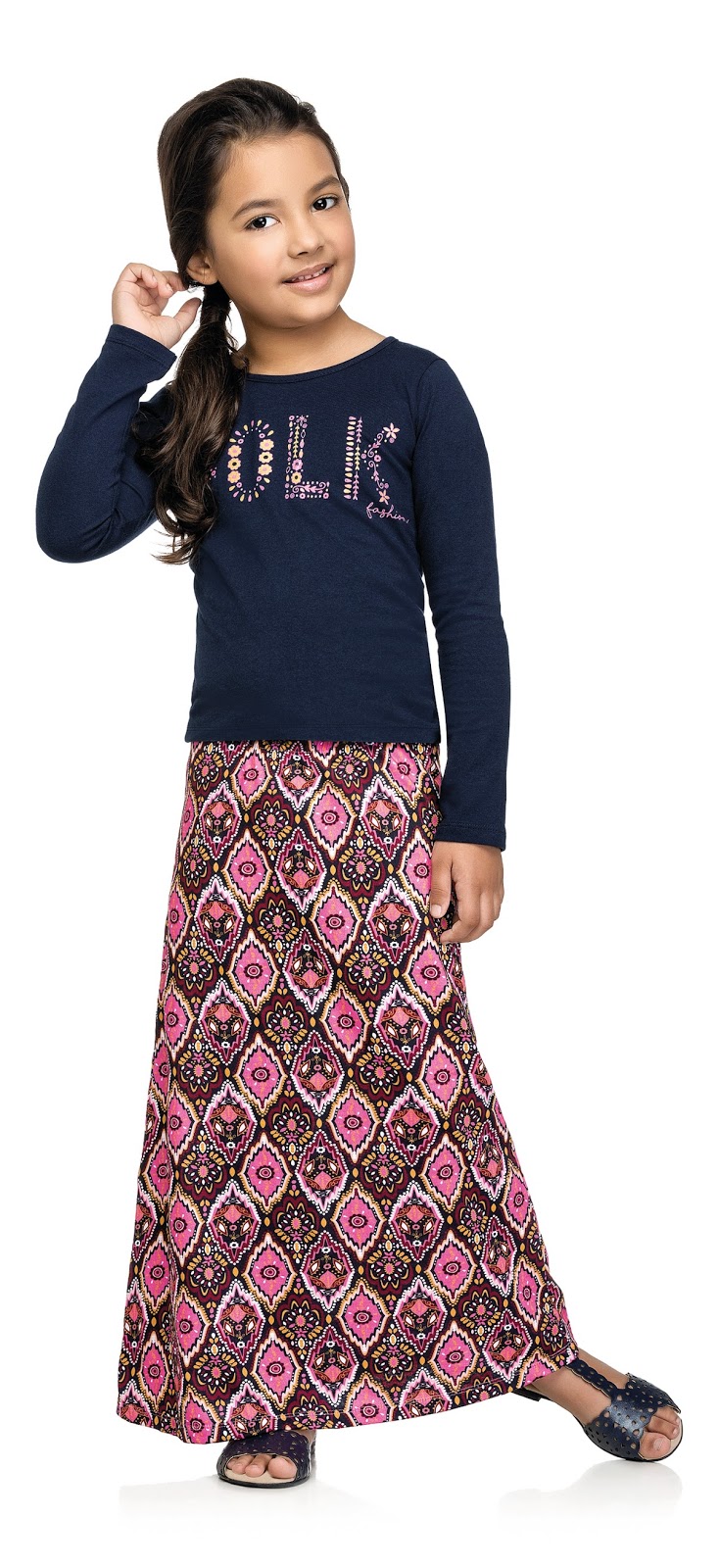 E não é porque as temperaturas caem, que as cores precisam se apagar. Estampas mais quentes da temporada como florais com fundo escuro, corações, listras e gráficos invadem a coleção. Uma das novidades é a saia longa, super tendência da estação e que garante conforto e liberdade dos movimentos, além de muito estilo para acompanhar as meninas fashionistas.