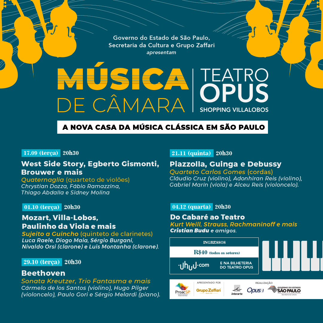 De setembro a dezembro o espaço receberá programação rica e diversa em iniciativa que tem como objetivo tornar a música de concerto acessível ao público. No programa obras de Mozart, Piazzolla, Strauss, Villa-Lobos, entre mais clássicos e contemporâneos.