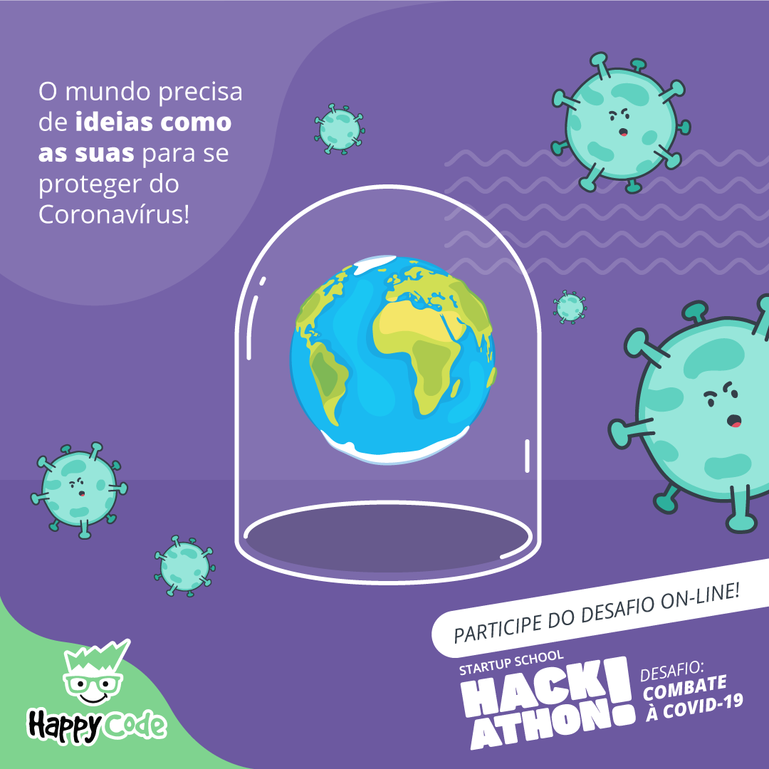 Totalmente virtual e gratuito, Hackathon Happy Code acontece entre os dias 8 e 22 de abril em todo o Brasil; com o objetivo é estimular famílias a pensarem em soluções de prevenção ao novo coronavírus.