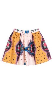 Assim como a coleção principal, as peças são estampadas por ilustrações florais e geométricas em tons leves e românticos. Destaque para o vestido de veludo, com saia rodada e acabamento de pompons nas mangas e na barra da saia.