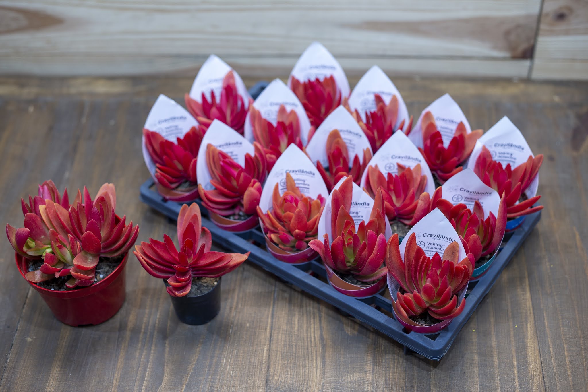 A espécie utilizada é a Echeveria Miranda, um híbrido desenvolvido pela empresa holandesa Amigo Plant. A Echeveria é um grande gênero botânico de plantas pertencentes a família Crassulaceae, sendo encontrada no Texas, no México e na América do Sul. No natural, suas folhas formam rosetas nas cores verde, azul ou avermelhada. São muito duráveis, continuando bonitas mesmo se permanecerem até um mês e meio sem receber água.