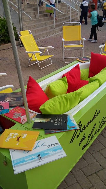 Banheiras com almofadas, cadeiras de praia, guarda-sóis e uma biblioteca com mais de 40 livros convidam a todos para um banho de leitura a céu aberto na rua Dr. Vila Nova.