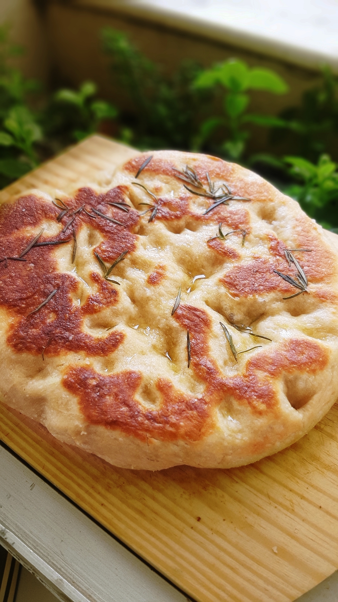 Em uma frigideira coloque bastante azeite, galhos de alecrim, e em fogo baixo coloque uma parte da massa. A cozinhe por 5 minutos, vire-a, coloque um pouco mais de azeite, e cozinhe mais 5 minutos
