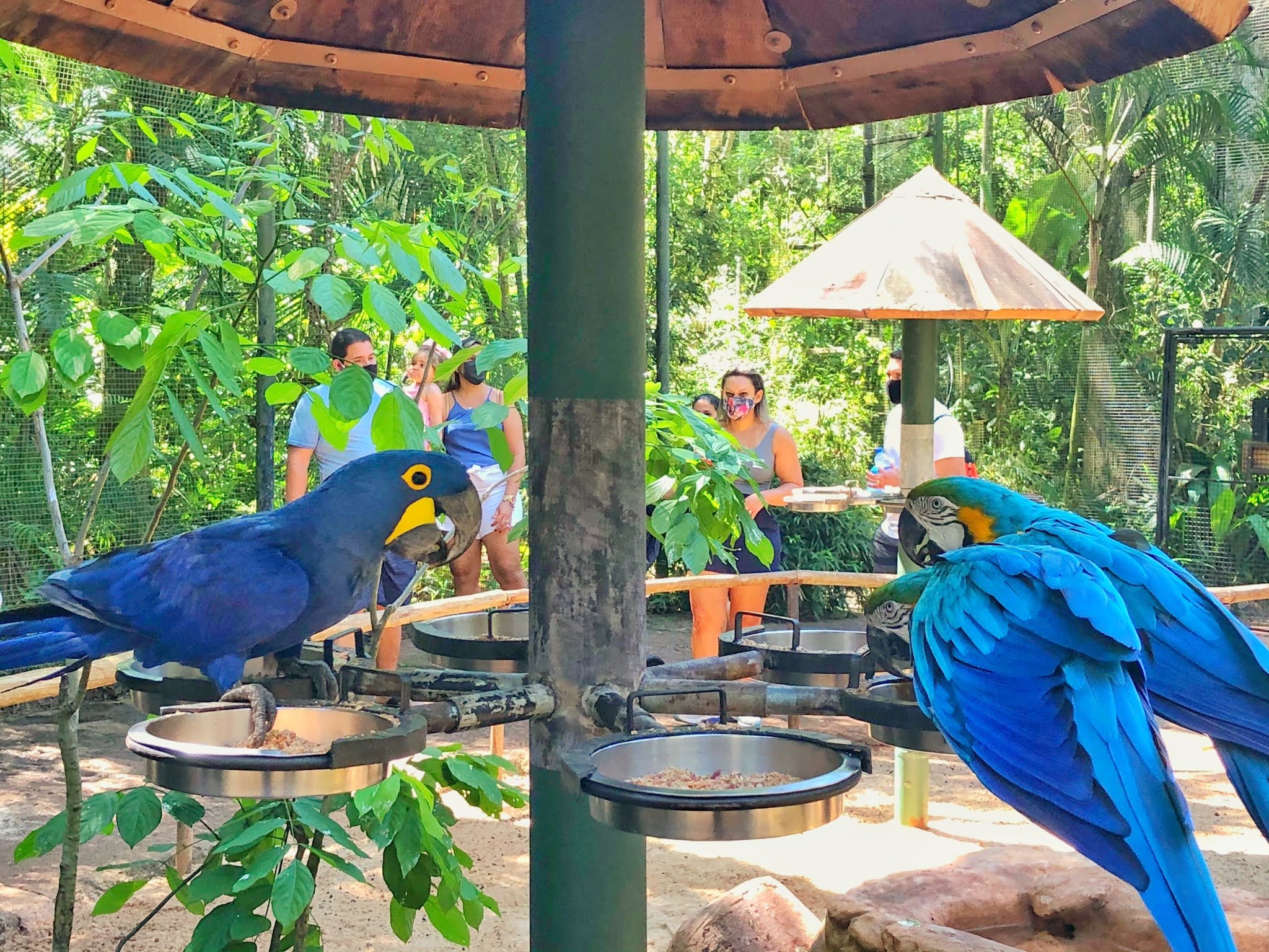 “A equipe do Parque das Aves estudou os fatores que elevam a qualidade de vida das araras, como também os momentos-chave de encanto para turistas. O estudo nos fez repensar completamente o desenho interno do viveiro: agora, os voos rasantes que as araras dão sobre nossas cabeças são complementados por oportunidades de ver as araras muito mais de perto. E com a instalação de novos comedouros de formatos inovadores, o visitante pode apreciar um espetáculo de cores e interações entre animais que é inédita e absolutamente linda”, comenta Carmel Croukamp, diretora geral do Parque das Aves.