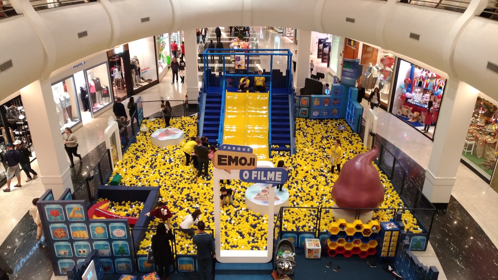 O Parque Emoji é uma atração exclusiva da rede BRMALLS, em parceria com a Sony Pictures. Até outubro, ele percorrerá nove shoppings da rede em todo país, em comemoração ao lançamento do filme nos cinemas brasileiros, marcado para 31 de agosto.