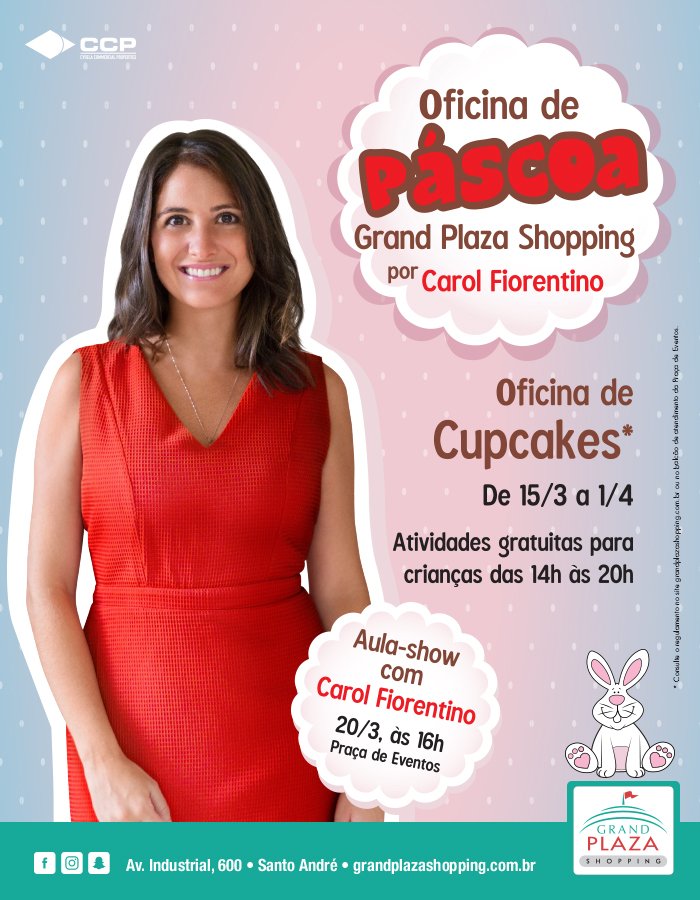 O período de Páscoa no Grand Plaza Shopping promete ser de muita diversão e mão na massa. Até o dia 1º de abril, o maior e mais completo complexo de compras e lazer do ABC promove a “Oficina de Páscoa por Carol Fiorentino”.