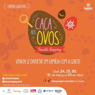 A Páscoa vem recheada de animação no Boavista Shopping. As crianças de 4 a 13 anos vão se divertir com a caça aos ovos de chocolate e fazer pinturas faciais.