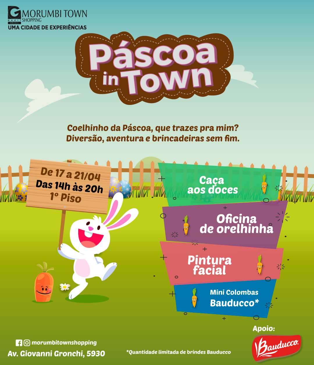 Para comemorar o feriado, o Shopping realiza a brincadeira por diversas lojas. A ação “Páscoa In Town” acontece durante cinco dias em horários especiais