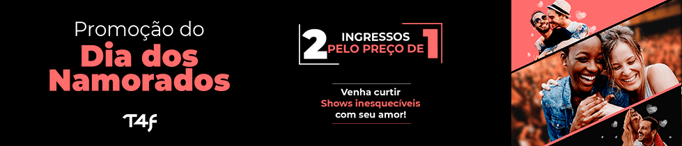 A Tickets For Fun, maior empresa de venda de ingressos do país, anuncia a Promoção dos Namorados. Chance única de presentear seu amor com uma experiência inesquecível. Vários shows da TIME FOR FUN estão com pacote 2×1, em que na compra de um ingresso inteiro o cliente leva um de graça (confira a lista abaixo).
