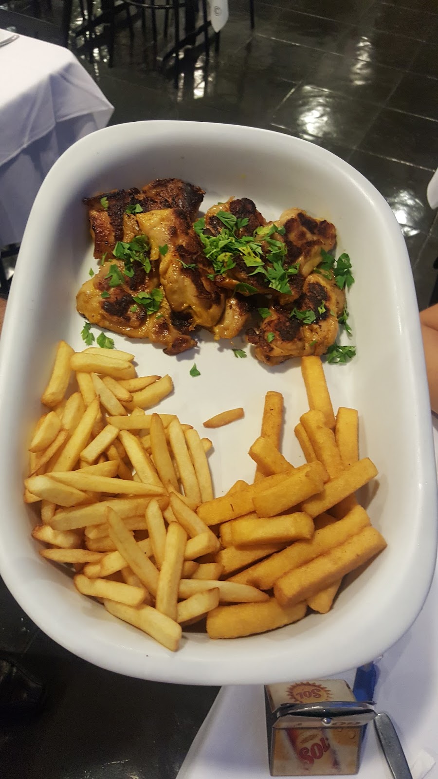 Ainda fazem parte do rodízio entradinhas como bolinho de bacalhau e sobrecoxa desossada.