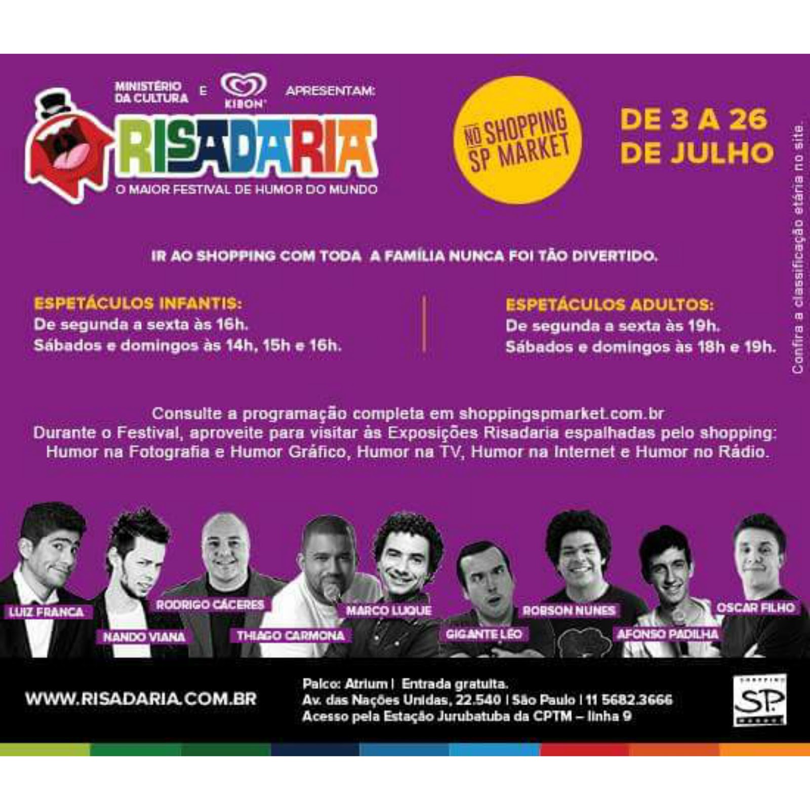 Tem RISADARIA Kids no Shopping SP Market e tem programação infantil todos os dias com peças infantis, shows de palhaços, esquetes cômicas, ventriloquia e musicais engraçados.