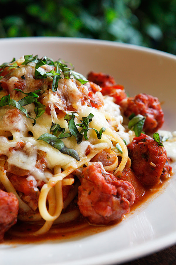 Rustic Sausage Pasta – Apetitosa linguiça Italiana assada ao molho de tomate, com massa linguine e gratinado com mescla de queijos especiais e um toque de manjericão.