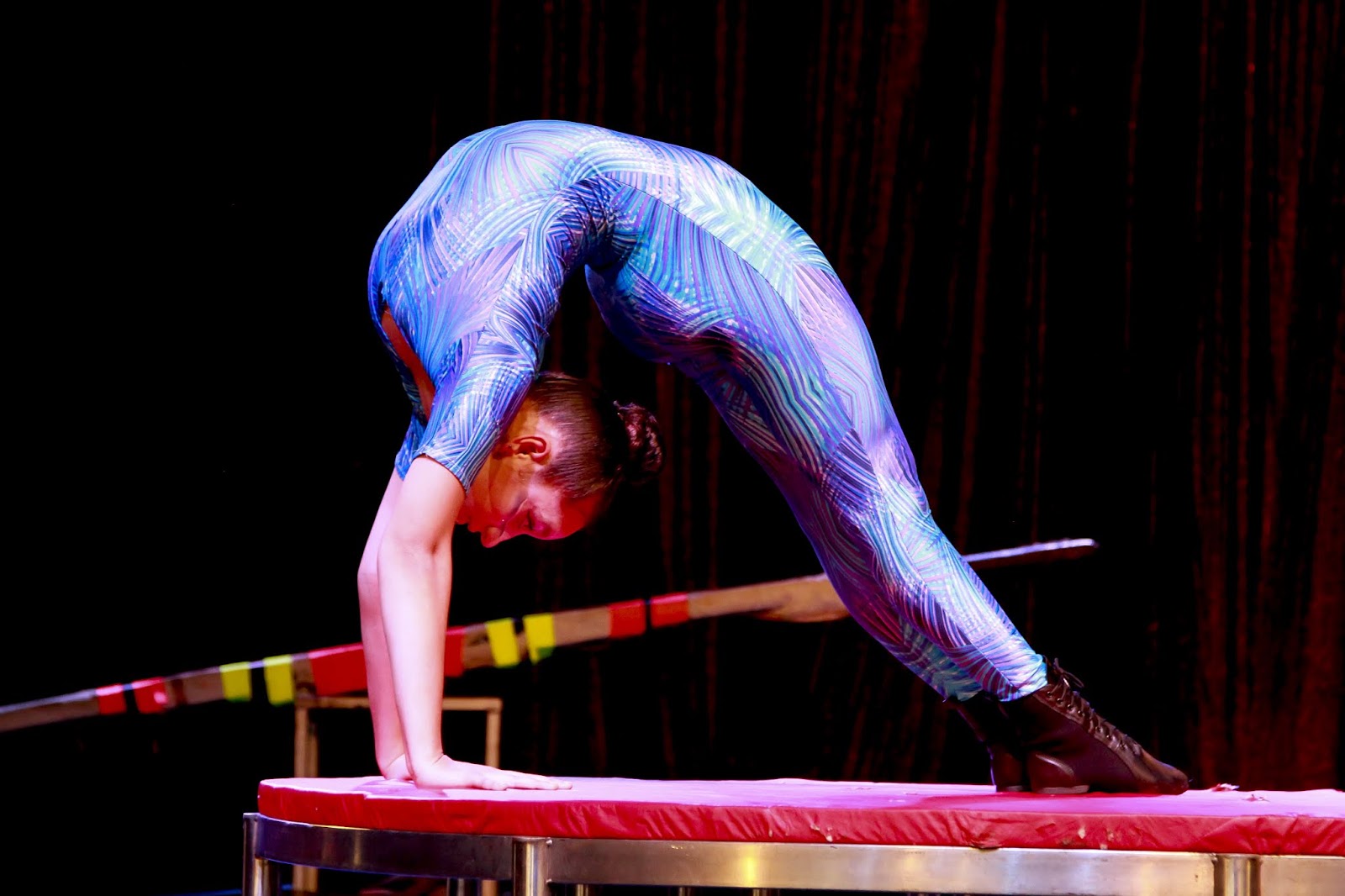 Na apresentação, os nove artistas em cena apresentam-se números de palhaçaria, tecido, lira, tramp wall, báscula, maca russa, arame, cordas, bambolê, trança e contorção. Além da estrutura física do espaço, o figurino também remete aos clássicos do circo, com peças coloridas e vibrantes.