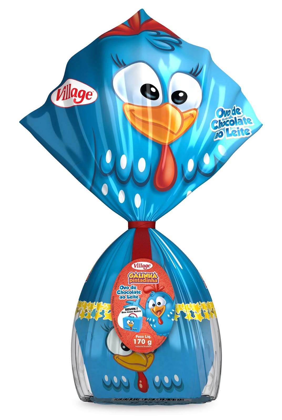 A linha infantil da Village tem, ainda, a alegria do cãozinho Doki 90g, a Galinha Pintadinha 90g, Scooby Doo 90g e Patati Patatá 90g, todos em três diferentes e divertidas embalagens, recheadas com as deliciosas gotas de chocolate ao leite.