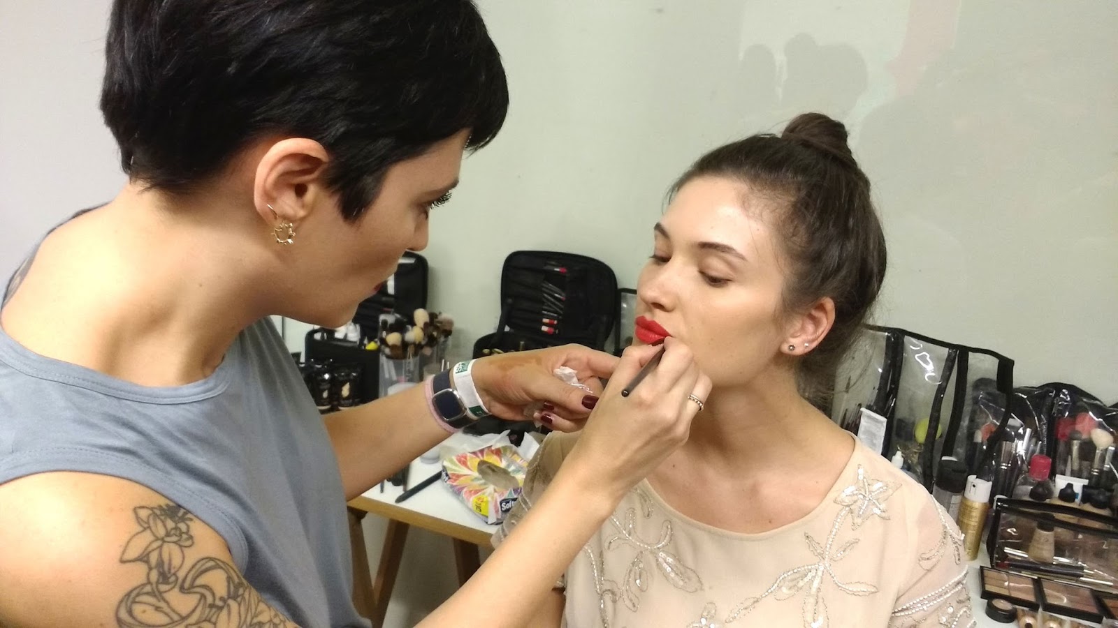 Vanessa optou por usar nas modelos looks bem cleans e naturais, com destaque apenas para os lábios que receberam tonalidades variadas de vermelhos e finalização com gloss, conferindo acabamento molhado. Foram utilizados os batons Vult da nova coleção de Mattes nas cores 10, 11, 12 e 13 e o Gloss Vult Incolor.